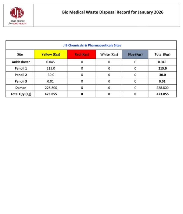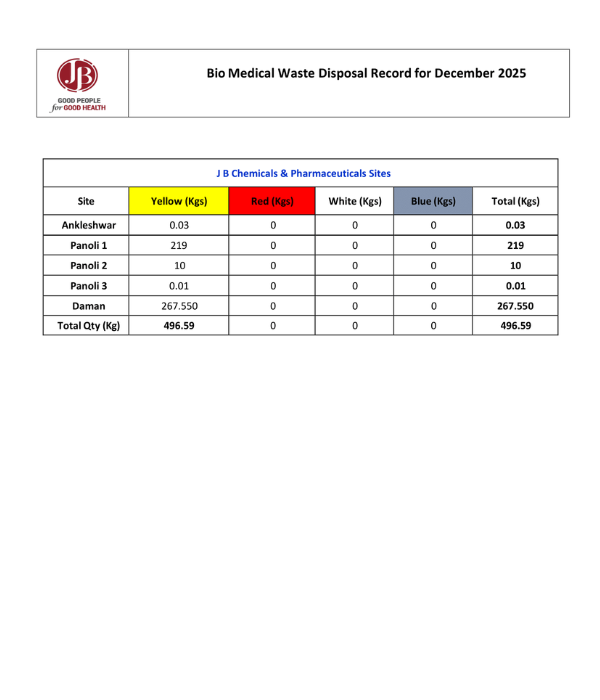 JB Pharma is committed to safe, compliant and environmentally responsible biomedical waste management.